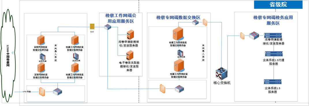 方案整體設計從互聯網接入安全、移動辦公安全、區域間數據交互安全等多個方面,圍繞網絡安全、主機安全、數據安全、應用安全多個維度構建整體安全解決方案,實現對律師互聯網閱卷系統的安全防護。