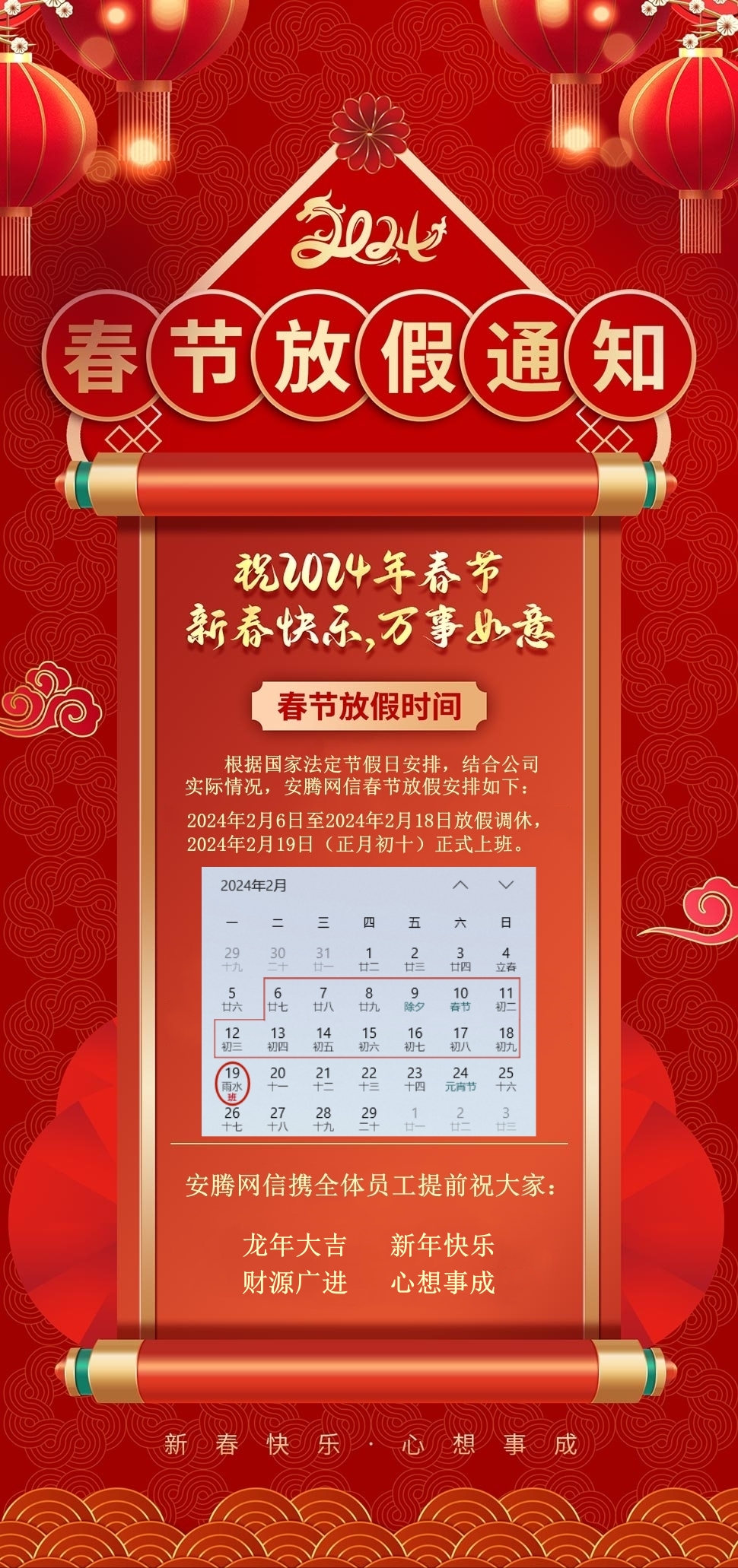 安騰網信春節放假安排如下: